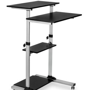 Mobile Stand Up Desk/Height Adjustable Computer Work Station Rolling Presentation Cart (for Monitor or Laptop)